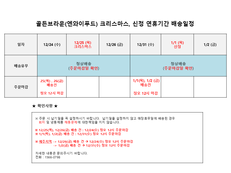 ※ 1/1(목), 1/2(금) 배송 건 : 12/31(수) 정오 12시 주문마감
