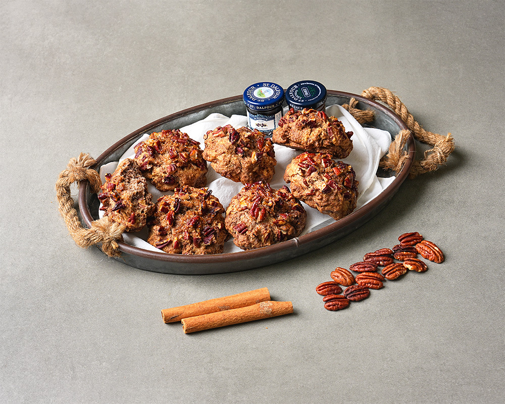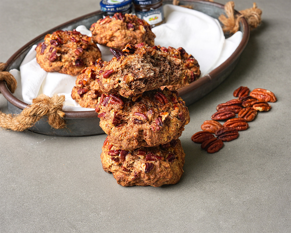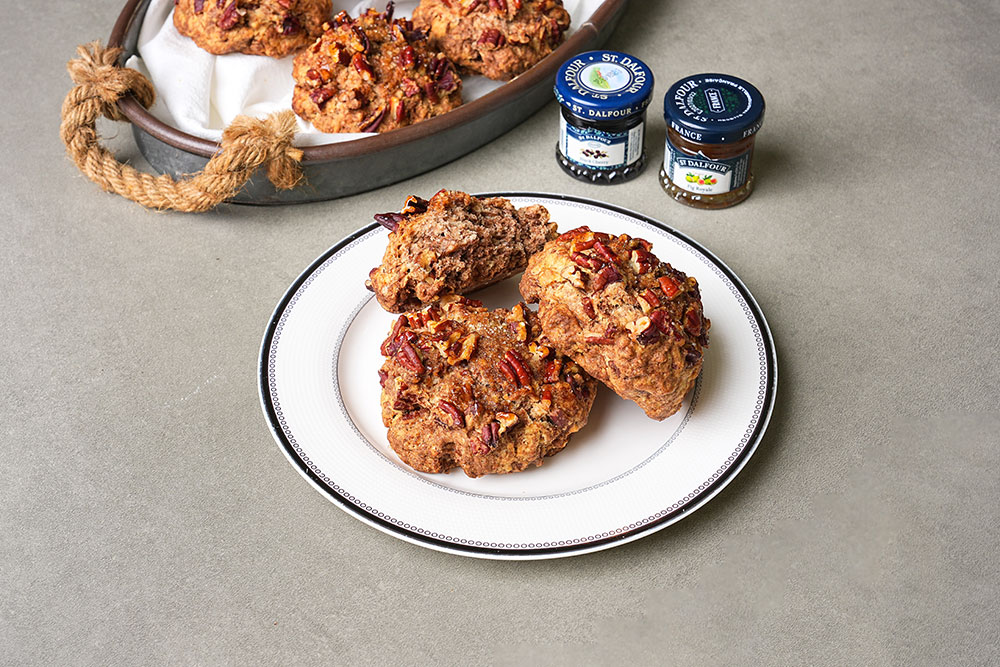 잼을 곁들여 보세요. 더욱 맛있는 시나몬 피칸 스콘을 즐길 수 있습니다.