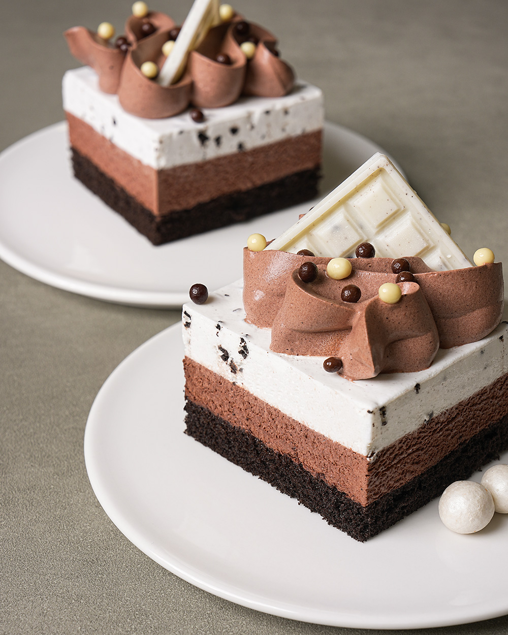 진한 초콜릿과 바삭한 크런치가 조화를 이룬 프리미엄 케이크