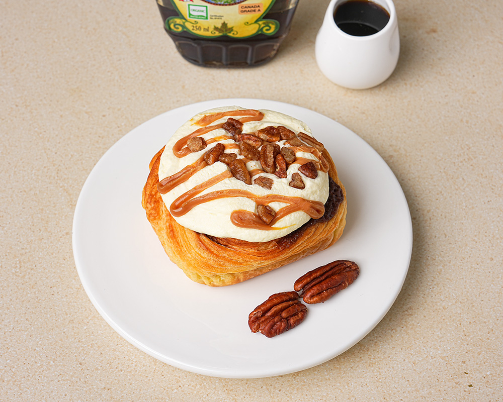 고소한 피칸과 진한 카라멜 소스를 듬뿍 올린 클래식 스타일의 '베키아에누보 피칸 카라멜 시나몬롤'을 소개해 드립니다. 부드럽고 촉촉한 시나몬 번 위에 달콤한 카라멜 글레이즈를 입히고 바삭하게 볶아낸 피칸을 듬뿍 더해 풍부한 식감과 깊은 풍미를 즐길 수 있습니다.