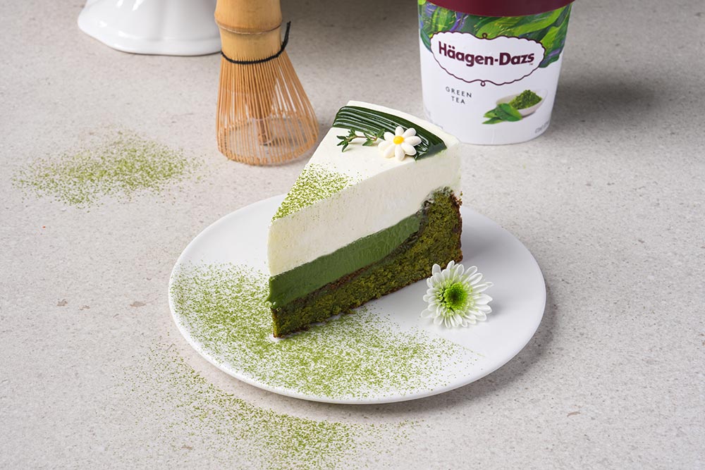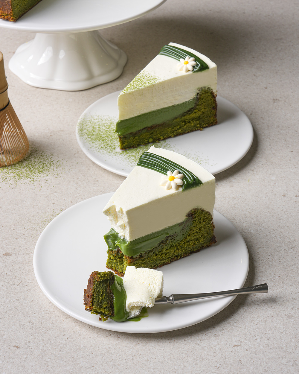 허브 또는 말차 파우더를 올려서 연출해 보세요. 케이크의 비주얼이 한껏 살아날 거에요.