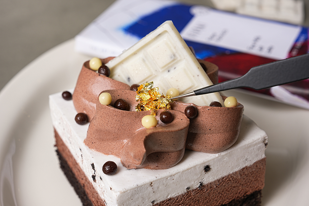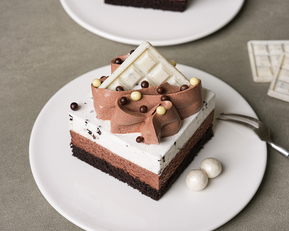 진한 초콜릿과 바삭한 크런치가 조화를 이룬 프리미엄 케이크